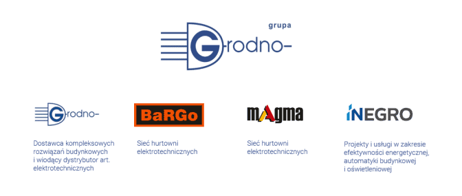 Grodno jest spółką, która powstała w 1999 r i jest czynna głównie na rynku elektrotechnicznym. Grupa Grodno składa się ze spółek: Grodno S.A., Bargo Sp. z o.o., Magma sp. z o.o. oraz Inegro Sp. z o.o. Spółka posiada w swych zasobach 88 hurtowni elektrycznych w całym kraju (w tym 13 oddziałów franczyzowych, 9 punktów spółki zależnej BARGO i 7 spółki zależnej Magma). Liczba pracowników wynosi 599. Spółka jest jednym z czołowych dystrybutorów produktów elektrotechnicznych w Polsce.