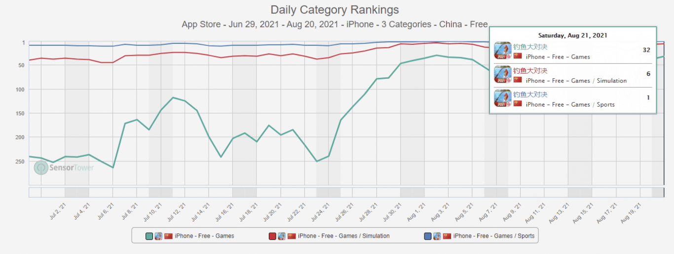 Pod koniec czerwca wpisem informowaliśmy o sukcesie TEN i zatwierdzeniu Fishing Clash przez chińskiego regulatora rynku gier. Lokalnym partnerem Ten Square Games został NetEase. Bazując na danych z sensortower FC w Chinach radzi sobie na razie bardzo dobrze: