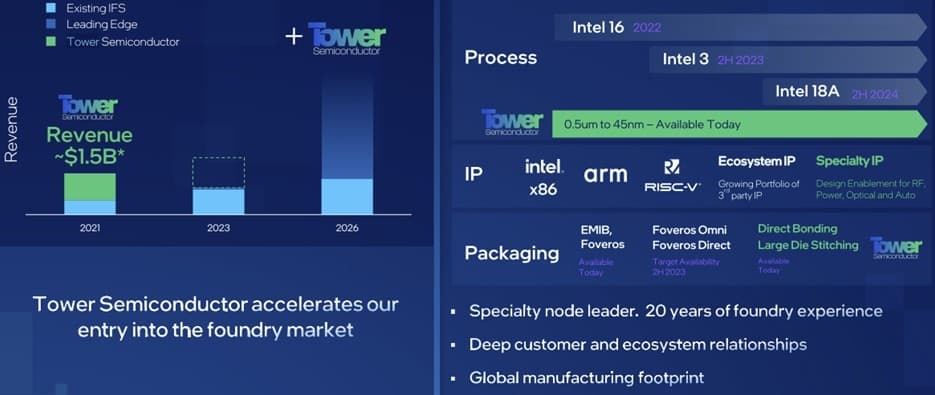 Tower’s specialty technology portfolio, geographic reach, deep customer relationships and services-first operations will help scale Intel’s foundry services and advance our goal of becoming a major provider of foundry capacity globally