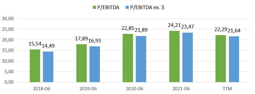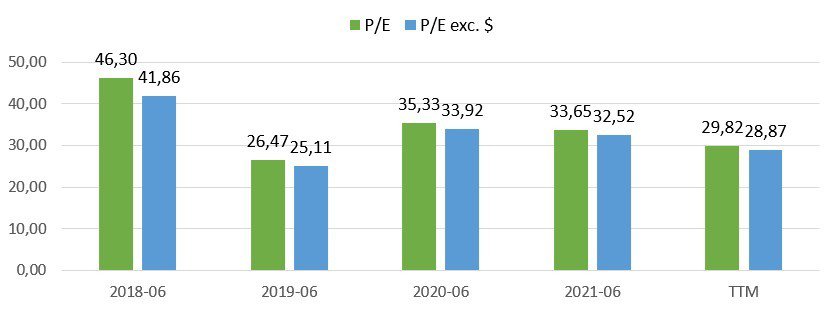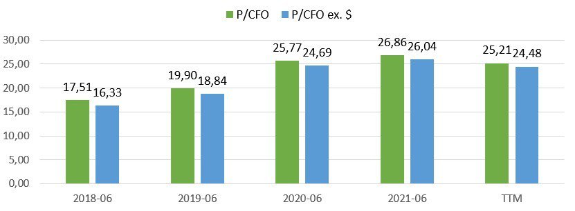 Spójrzmy na wycenę według wskaźników P/E, P/CFO oraz P/EBITDA za ostatnie pięć lat: