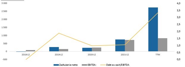 Jak wspomniałem wyżej przejęcie Heydude za 2,5 mld USD wiązało się ze znacznym wzrostem zadłużenia – po wynikach za 3Q22 debt/EBITDA wynosił 3,3 a celem spółki jest redukcja wskaźnika do poziomu ~2