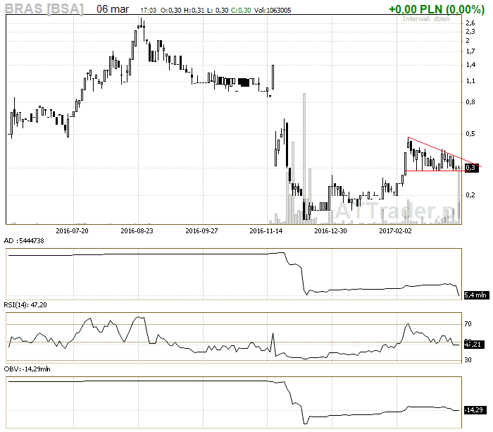 Informacja o emisji akcji na Brasterze może trochę pokrzyżować sytuację na wykresie: http://www.bankier.pl/wiadomosc/Braster-planuje-publiczna-emisje-akcji-chce-pozyskac-60-70-mln-zl-7503137.html