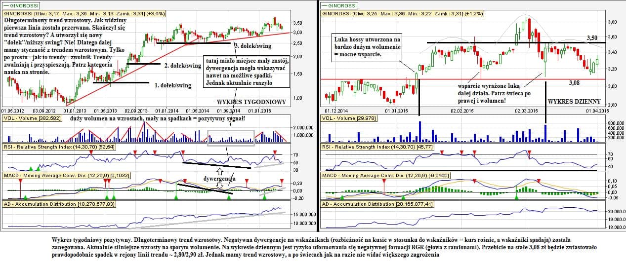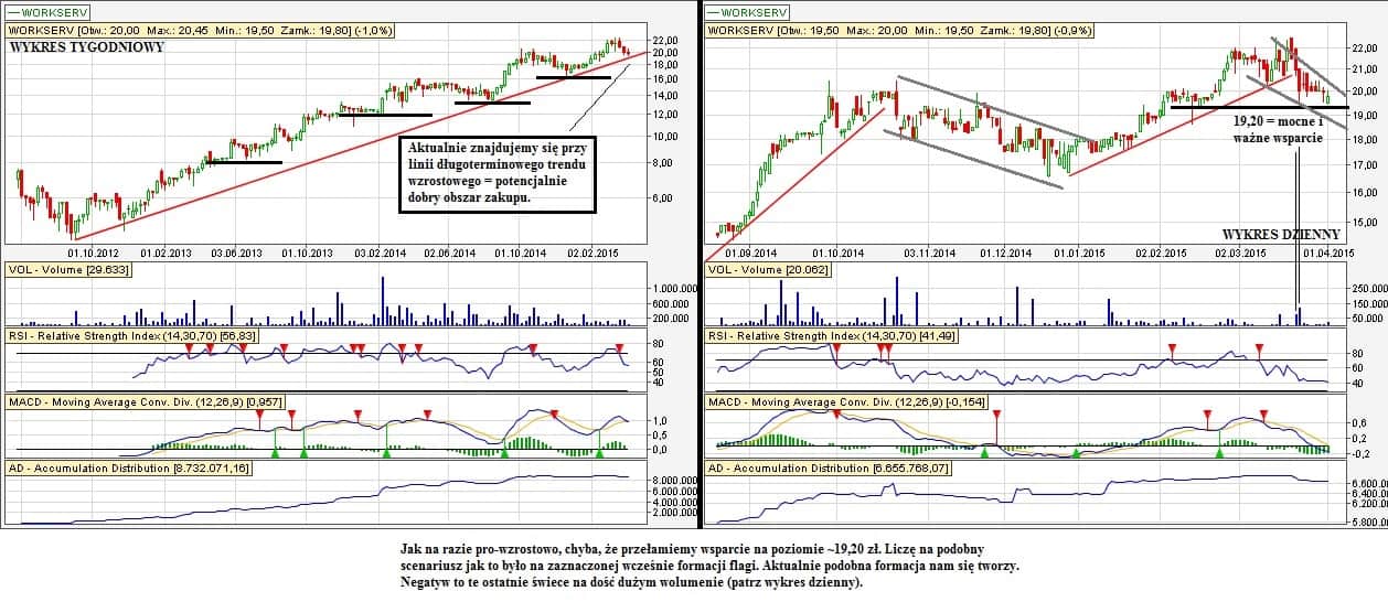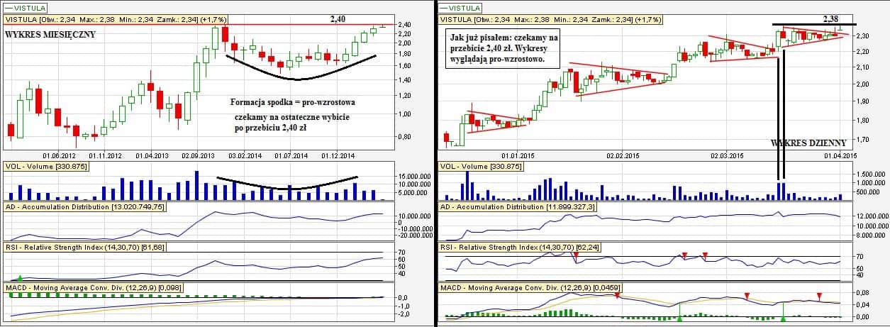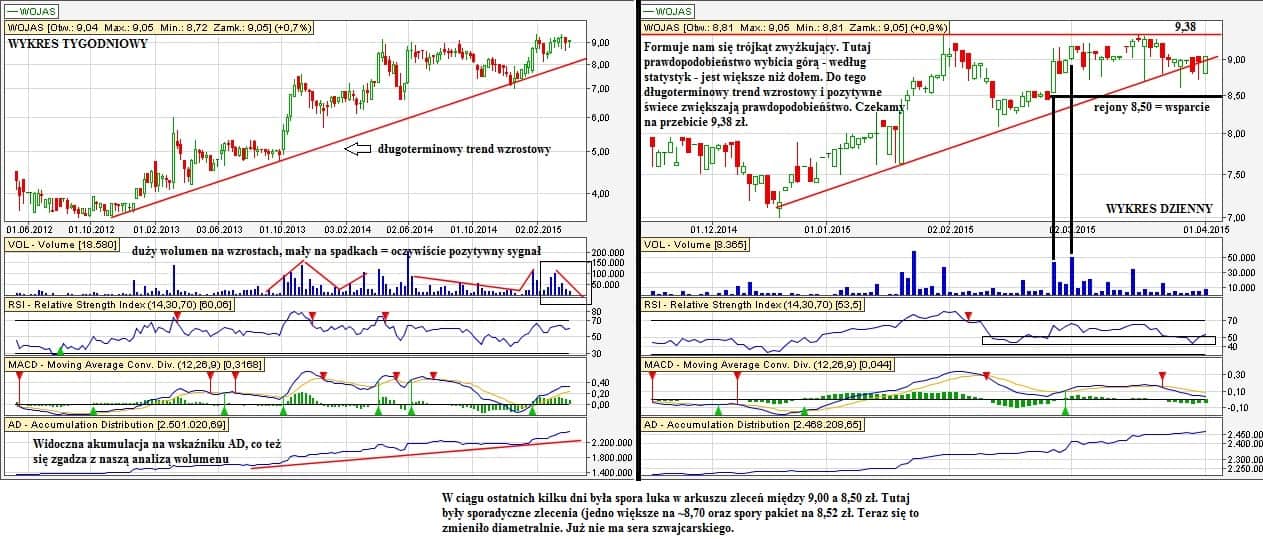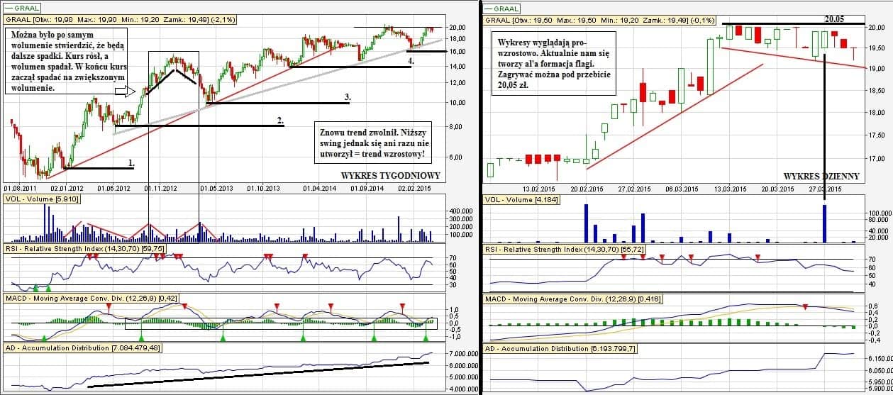 Zgodnie z obietnicą przedstawiam dzisiaj aktualizację spółek, które regularnie omawialiśmy/omawiamy na naszych łamach. Jednocześnie jest to głównie analiza spółek posiadanych przez jednego z naszych użytkowników: 11BIT, ASSECOPOL, FORTE, GINOROSSI, GRAAL, MONNARI, TFONE, VISTULA, VIVID, WORKSERV. Poniżej również się znajduje obiecana aktualizacja Wojas. Spółki 11Bit oraz Asseco Poland pojawią się jednak dopiero jutro – Błażej wykona ich analizę. Vivid zostawiam dla Żanety, gdyż wyraziła chęć podzielenia się z nami jej interpretacją wykresu. Każda z tych spółek jest w długoterminowym trendzie wzrostowym! Jedynie Tfone zmaga się aktualnie z problemami – z wiadomych przyczyn. 11Bit i Vivid mogę zaliczyć do spółek spekulacyjnych (tylko z uwagi, że to New Connect). Portfel więc dobrze rozdzielony. Są również spółki dywidendowe, co jest również koniecznością do jak największego ograniczenia ryzyka. Nowi użytkownicy również powinni znaleźć coś dla siebie. Te spółki nadają się na długoterminową inwestycję: jako pion portfela. Zaznaczyłem poziomy, po których przebiciu widzę potencjalnie dobry moment na wejście. Z tych spółek sam posiadam Graala oraz Asseco Poland (już wcześniej o tym wspominałem):