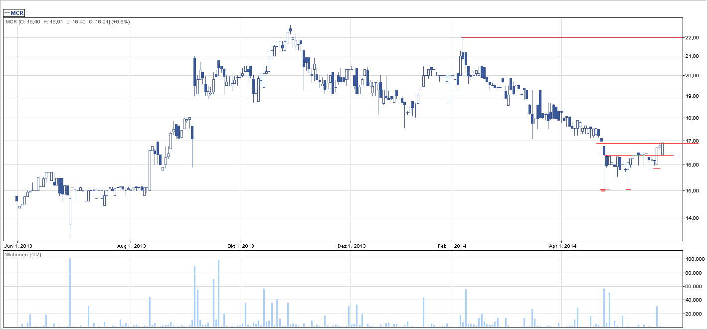 dwie pozytywne informacje nt nabycia akcji spółki, tu i tu oraz wykres:
