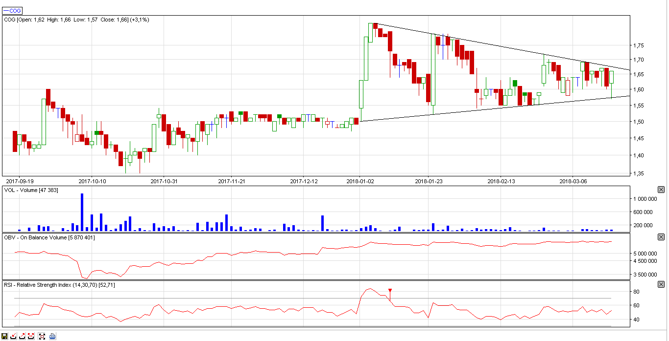 Cognor otworzył się dużą luką, która została prawie cała domknięta. Na razie wstrzymałbym się z kupnem akcji.