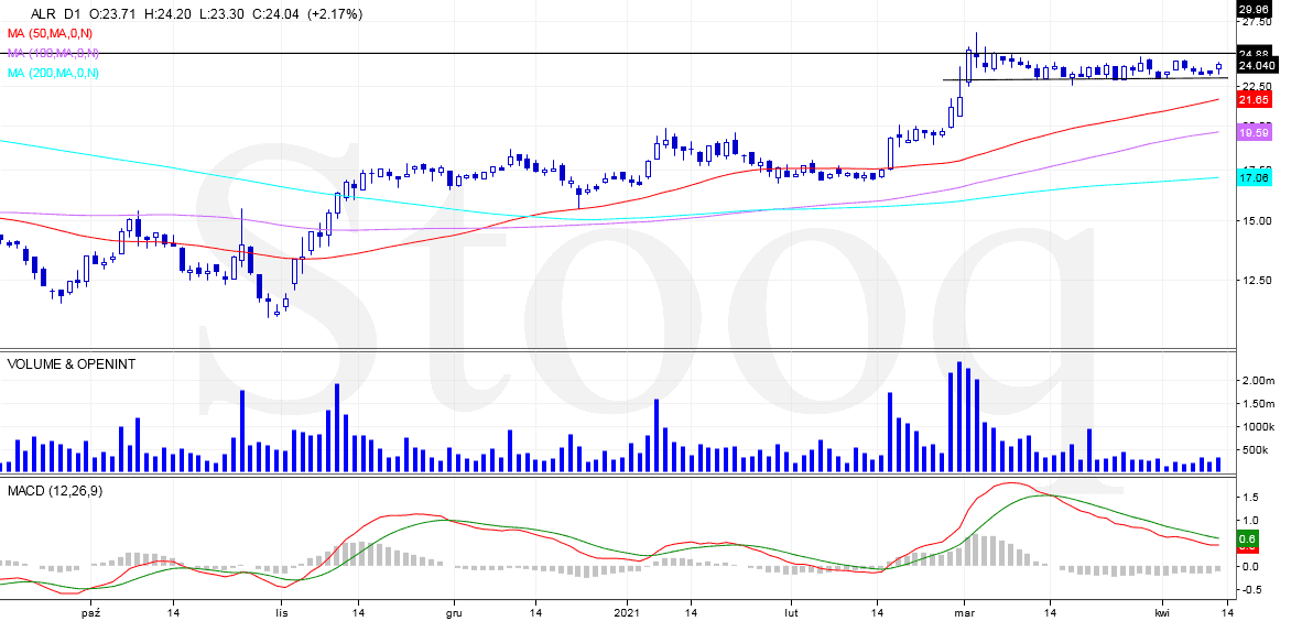 Pierwszą z omawianych spółek jest Alior, działający w sektorze bankowym, który od 19 marca 2021 r. został przeniesiony z indeksu WIG20 do MWIG40. Niedawno spółka przedstawiła zaktualizowaną strategię na lata 2021-2022, w której zawiesza wypłacanie dywidendy, aby zatrzymać zyski w firmie i przyspieszyć jej rozwój organiczny. W dniu 28.04.2021 r spółka planuje również opublikować raport finansowy za 1Q 2021r.