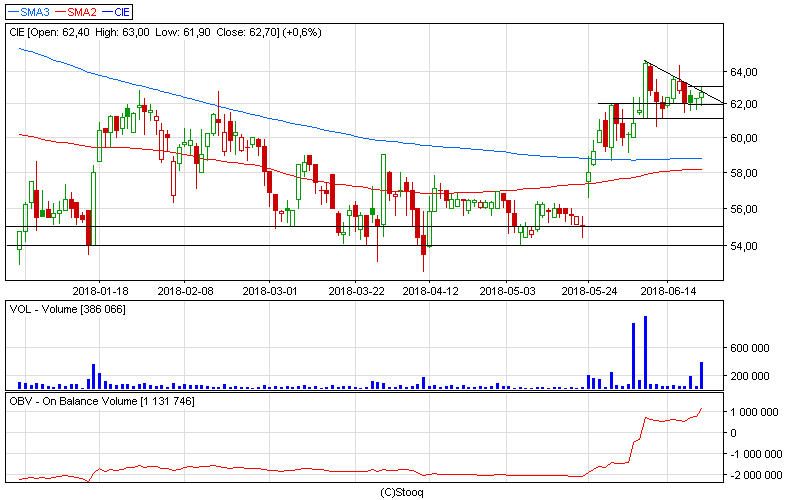 Na wykresie tygodniowym spółki widzimy, że kurs po konsolidacji przy wsparciu na 55 zł odbił się na zwiększonym wolumenie i teraz nastąpił krótki odpoczynek przed możliwymi dalszymi wzrostami. Na wykresie dziennym i 4-godzinnym widzimy, że kurs spółki jest w trakcie wyjścia z formacji a’la trójkąta zniżkującego, o czym świadczy zwiększony wolumen na ostatnich sesjach. Najbliższe wsparcie znajduje się w obszarze 61-62 zł a opór możemy wyznaczyć na poziomie 67 zł. Zagrywamy na wybicie z formacji.