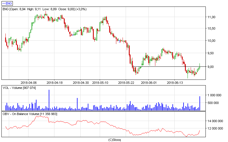 Ta spółka również znalazła się blisko wsparcia, co daje szansę na odbicie. Na piątkowej sesji pojawił się znaczny wolumen na świecy wzrostowej. Najbliższe wsparcie możemy wyznaczyć w okolicach 8,70 zł a pierwszy opór w okolicach 9,50 zł. Zagrywamy na wybicie poziomu 9 zł.
