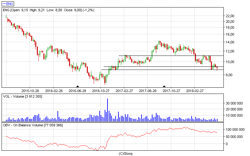 Niestety moje spółki po poniedziałkowej dość dobrej sesji dzisiaj zdołowały poniżej cen zakupu. Ciech i Enea wypadły na SL. ENG ma jeszcze trochę miejsca do wsparcia, ale patrząc na otoczenie jakoś nie jestem przekonany o tym, że to koniec spadków, więc bym zamknął pozycję. Wig20 aktualnie znajduje się przy wsparciu na 2 150 pkt i jutro zobaczymy czy na to wsparcie zareaguje i na jakim wolumenie.