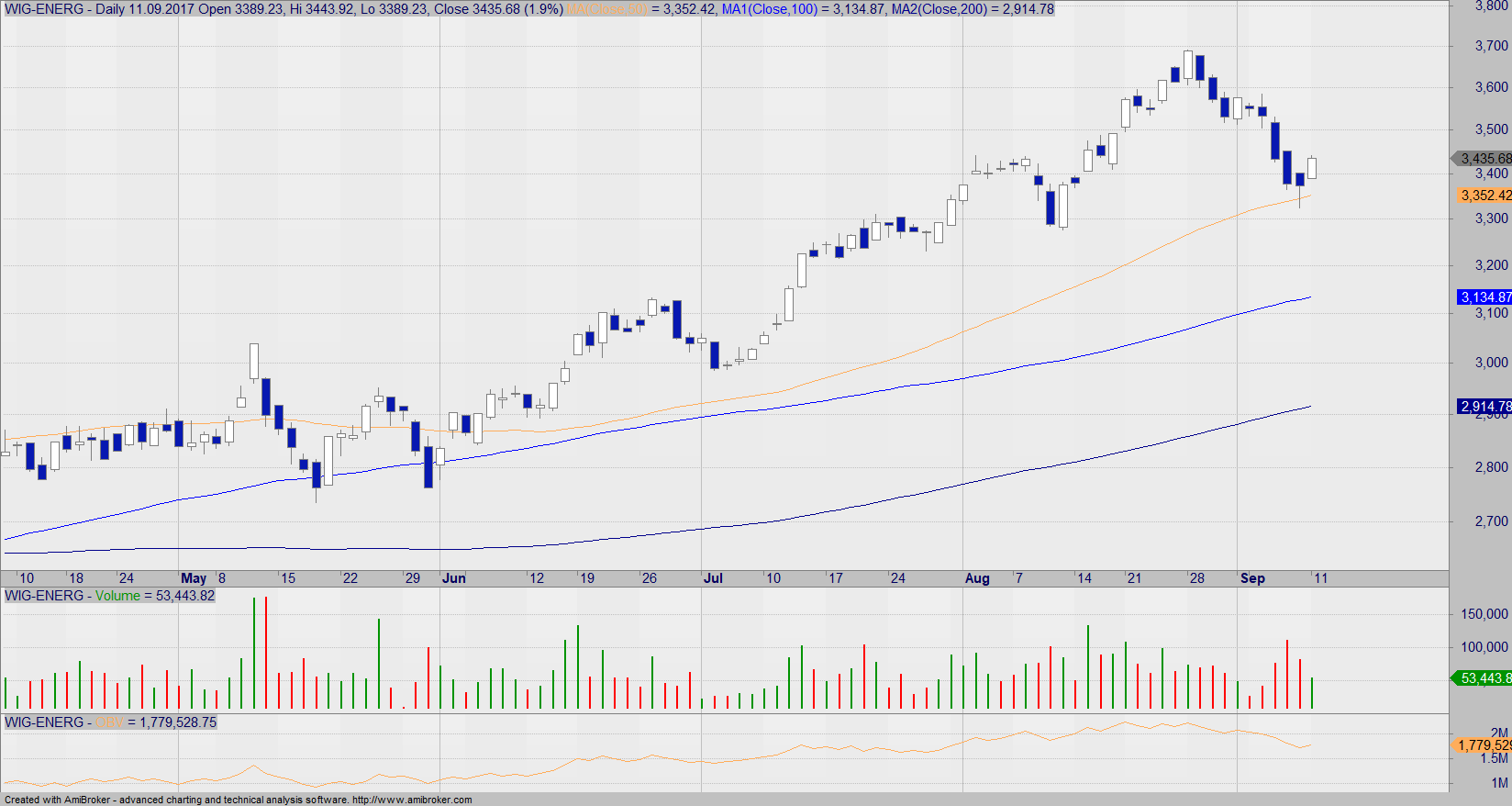 W piątek indeks spółek energetycznych walczył z jedną z średnioterminowych średnich kroczących oraz z lokalnym wsparciem na 3400 pkt. W poniedziałek natomiast mieliśmy potwierdzenie piątkowej świecy młot, dlatego też WIG-Energia powinien w następnych dniach korzystać z początkującego sygnału kupna. Z byczego sygnału skorzystały dopóki nieliczne spółki, a żeby nie “wsiadać” spóźnionym, patrzymy na tę spółkę, która oczekuje na szarżę popytu.