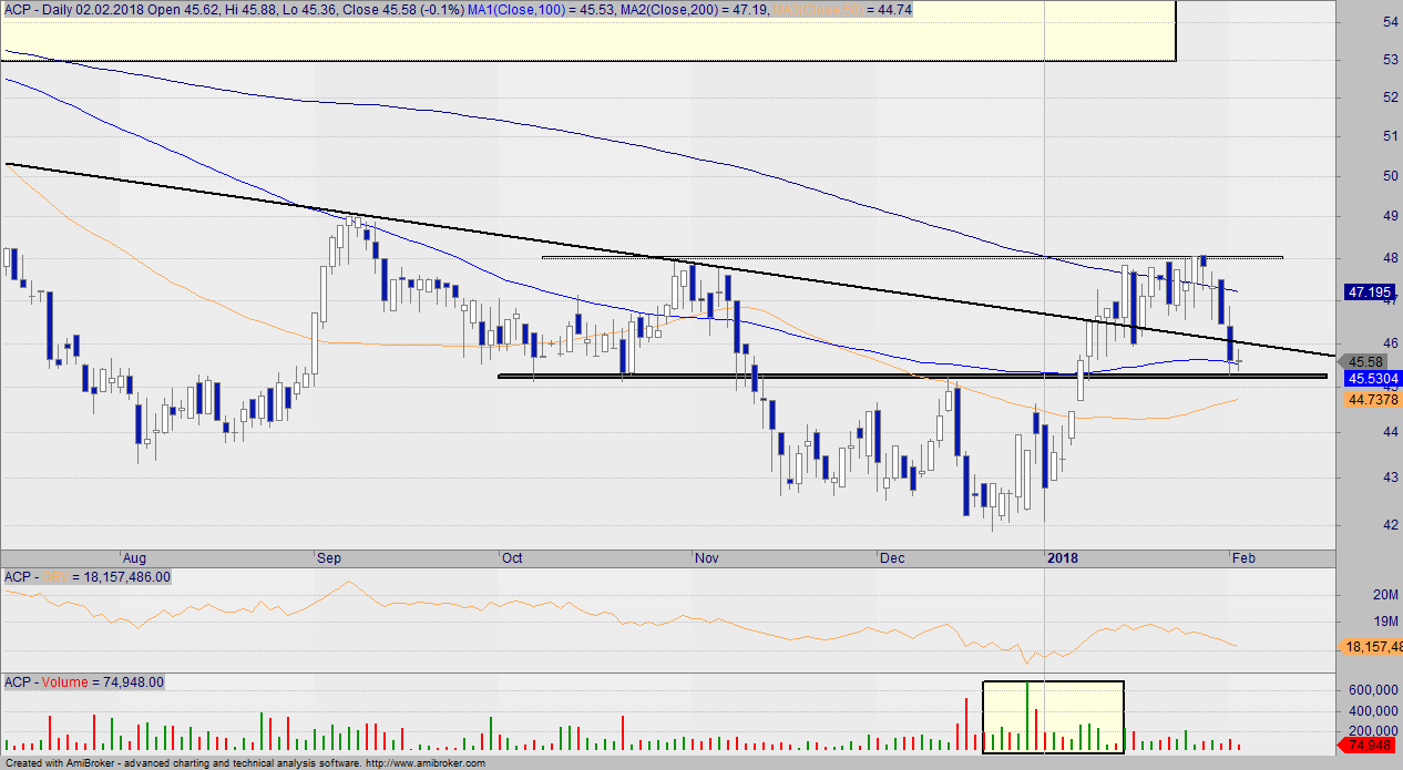 Opór okazuje się zbyt silny, ale kurs znalazł się na mocnym wsparciu, który powinien być respektowany. Jeżeli wybiją to wsparcie, to będziemy musieli pożegnać się z papierem na jakiś czas. Szkoda tylko, że od marca ACP nie będzie już w kręgu blue chips. Zamiast tego w skład dużych spółek wejdzie CD Projekt.