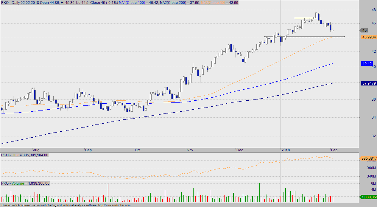 Możliwe, że kurs wyhamuje tutaj spadki, bowiem mamy pierwszy okaz obrony. W innym wypadku testujemy wspomniane wsparcie w ostatnim wpisie (43 zł).