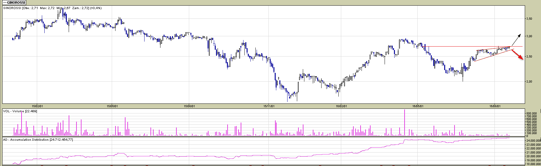 Na GRI kształtuje się formacja klinu zwyżkującego, która z reguły jest formacją prospadkową. Realizacja formacji zależeć będzie od tego, co kurs zechce najpierw przebić: opór czy wsparcie. Prowzrostowe zagranie zakłada wejście w walor oczywiście nad opór.
