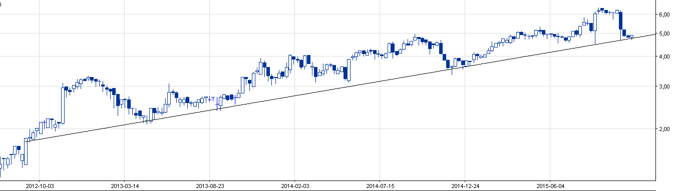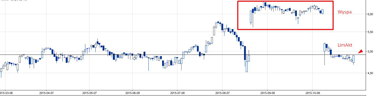 Komentarz: Kurs spółki porusza się w długoterminowym trendzie wzrostowym, co na pierwszy rzut oka może się wydawać nieprawdą. Czwartkowa sesja potwierdziła jednak utrzymanie trendu wzrostowego, którego początek wyznaczam na październik 2012. Na wykresie widoczna jest jednak formacji wyspy, która jest sygnałem sprzedaży. Z definicji wynika, że formacja wyspy jest oddzielona od reszty wykresu przez dwie częściowo pokrywające się luki i sygnalizuje zmianę trendu krótkoterminowego, ale nie trendu głównego. Jak to się przełoży na Ergis? Uważam, że obecne miejsce na wykresie należy traktować jako postój przed kolejnymi wzrostami, jest to bowiem naturalna sekwencja w długoterminowym trendzie wzrostowym. LimAkt na 4,93 zł. Kolejny opory wyznaczam na 5,2 oraz 6 zł – w przedziale tym znajduje się luka spadkowa. SL nie niżej niż 4,68 zł. Zauważyć należy opublikowany dzisiaj raport kwartalny.