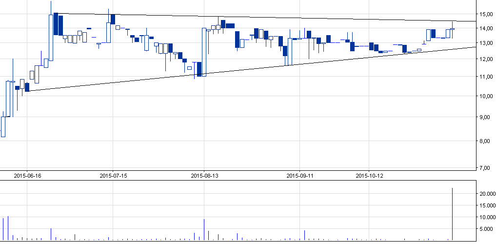 Ponadto należy spojrzeć na następnych sesjach na Platige, który na czwartkowej sesji był mocno rozgrywany generując najwyższy od roku obrót. Informacja nt. pomocy w finansowaniu przy filmie o wiedźminie była zapewne główną iskrą dla takiego zachowania. Z uwagi na ogólnie małą płynność na walorze, ew. wejście rozpatrywałbym małym kapitałem. Przykładowy LimAkt to 14,86 zł.