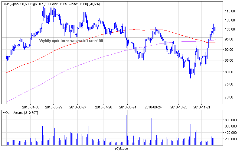 Kurs cały czas znajduje się pod opadającymi średnimi sma100 i sma200 a zmiana trendu czy tendencji na wykresie zazwyczaj nie przychodzi tak prosto. Jak mawia stare giełdowe przysłowie – ,,Niedźwiedzie skaczą z okien, a byki wchodzą po schodach”.