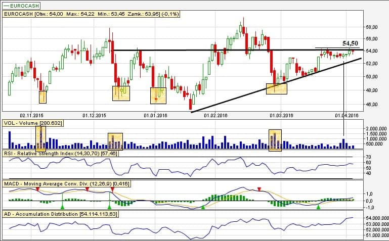 Eurocash nie miał siły ciągnąć w górę, chociaż się aktywował. Trend wzrostowy jednak się utrzymuje