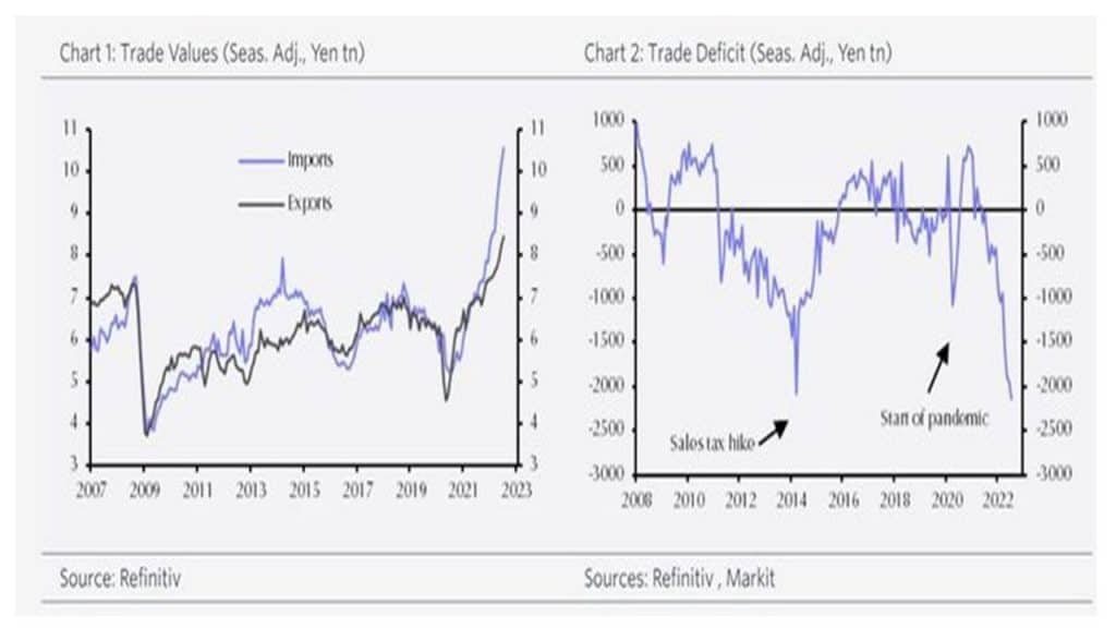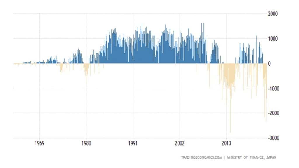 Gospodarka japońska od wielu lat cieszyła się renomą wiodącego światowego eksportera, zwłaszcza w dziedzinie dóbr wysoko przetworzonych (przemysł motoryzacyjny, elektroniczny i precyzyjny). Kraj mógł się poszczycić, że regułą było uzyskiwanie nadwyżek eksportu nad importem w handlu zagranicznym. Mowa zwłaszcza o „złotych dekadach”, czyli okresie od lat 70-tych poprzedniego stulecia do pierwszych lat obecnego wieku. Prawdopodobnie jako cezurę świetnej passy można uznać Wielki Kryzys Finansowy (GFC) z 2007-2008. W tym okresie niemal w każdym roku Nippon generował dodatni bilans wymiany handlowej. W skali świata było to osiągnięcie wyjątkowe, o którym praktycznie każdy kraj mógł pomarzyć.