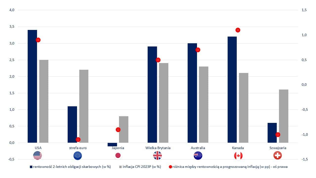 Infografika 7 – Rentowności dwuletnich papierów skarbowych na tle oczekiwanej inflacji na koniec 2023 roku