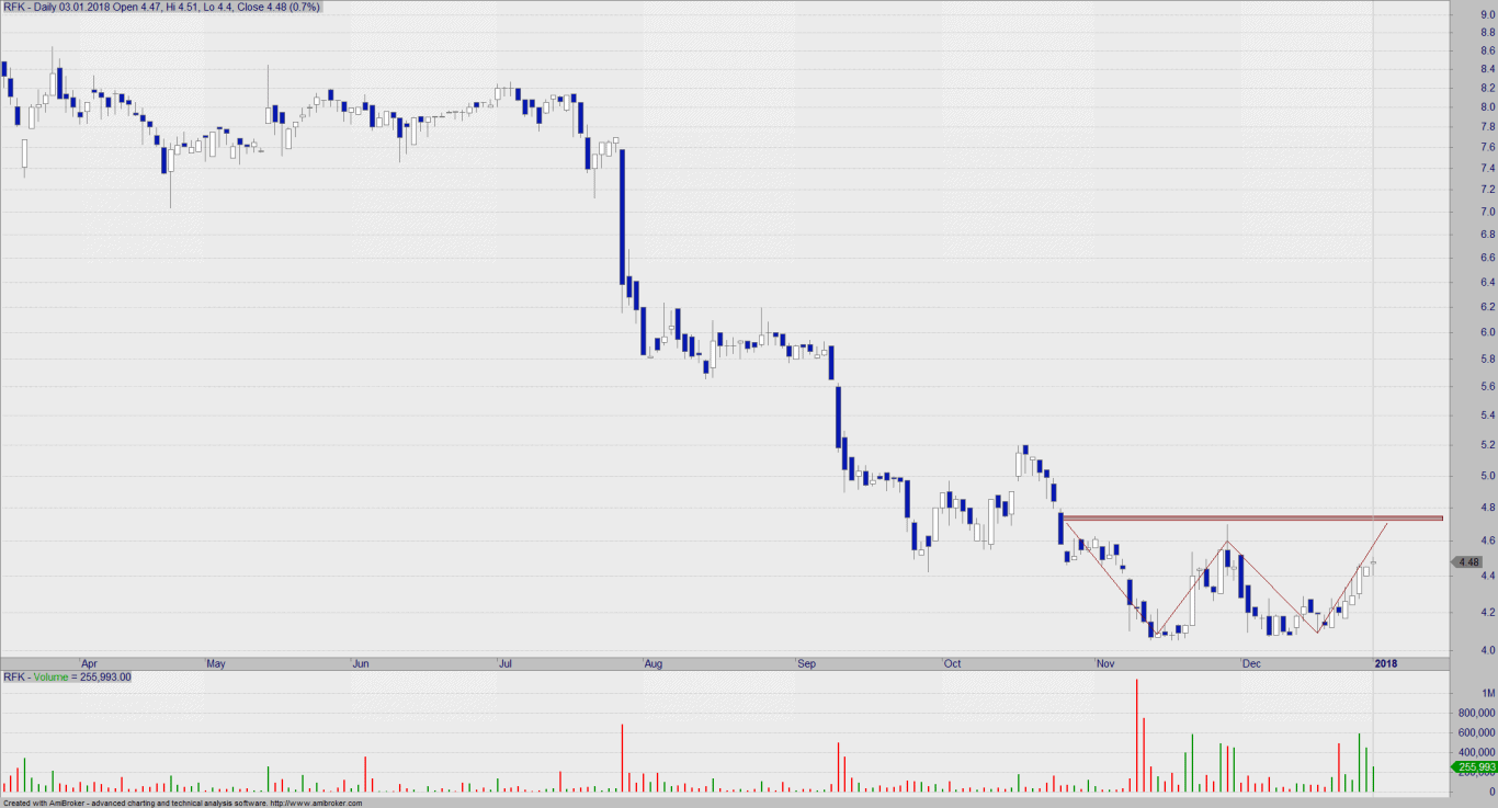Powoli i tutaj zaczyna się przejaśniać. Na wykresie Rafako tworzy się potencjalna formacja podwójnego dna (Eve), a obrót na wieloletnich minimach wskazuje na mocne zainteresowanie akcjonariuszy. Wybicie lokalnego szczytu, to realizacja prowzrostowych nastrojów.