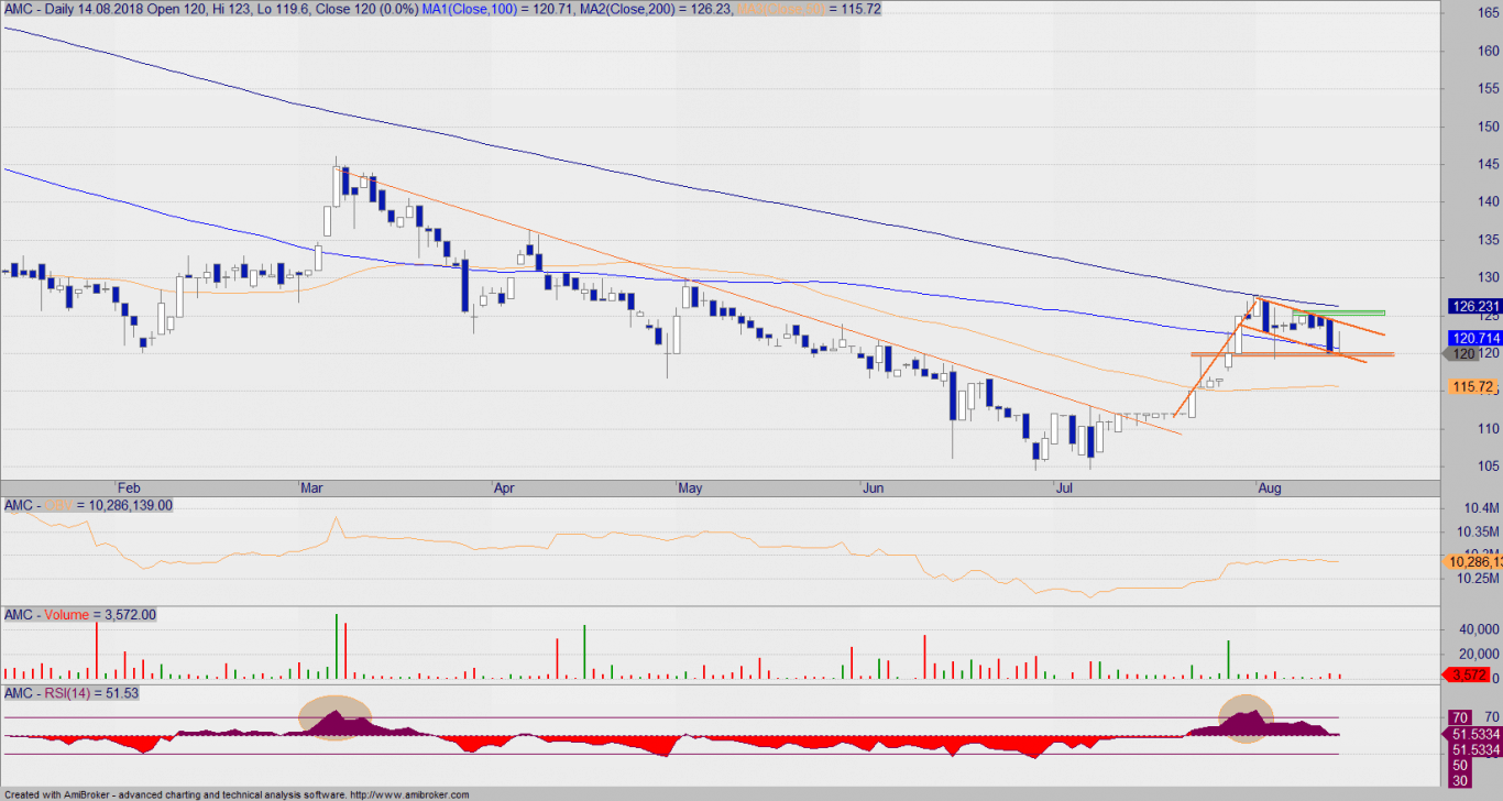 Komentarz:Kurs znalazł się w idealnym miejscu do tego, aby pokazać czy popyt na stałe wróci na pokład AMC. Mamy trzy przesłanki do tego, że sytuacja na wykresie uległa znaczącej poprawie: