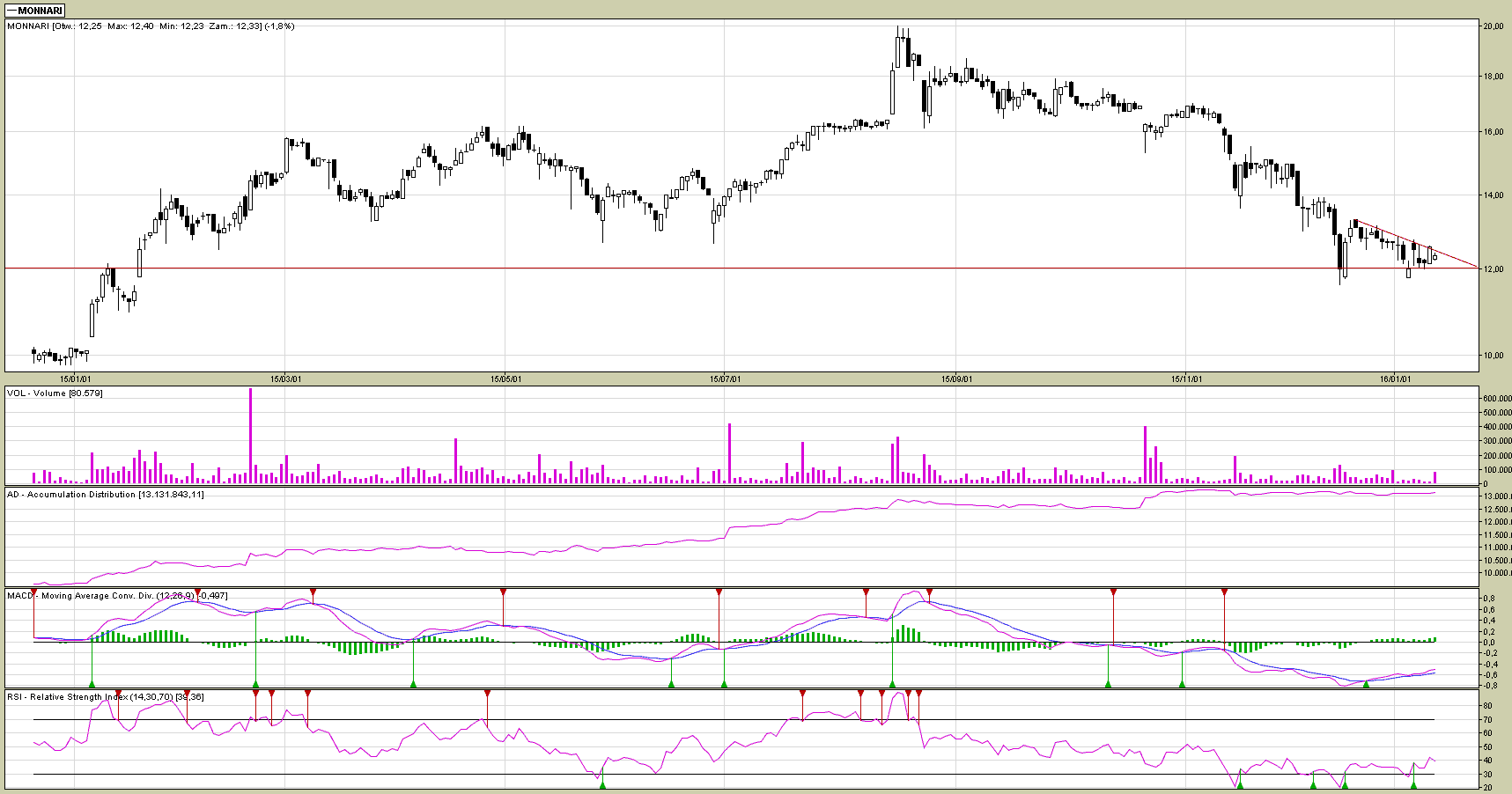 Na Monnari czekamy w dalszym ciągu na wybicie. Zaktualizowana zagrywka to na przebicie 12,60 zł (przykładowy LimAkt 12,61 zł). Stałe przebicie 12,15 zł zapali czerwoną lampkę.