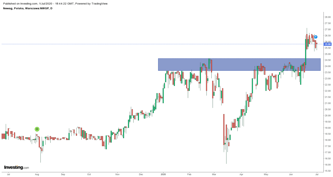 26 czerwca NWG opublikował raport kwartalny pokazując bardzo dobre wyniki. Przychody r/r wzrosły o 90%. W pierwszym kwartale 2019 roku spółka odnotowała stratę w wysokości 1,3 mln zł natomiast w 2020 zysk na poziomie 32,7 mln złotych.