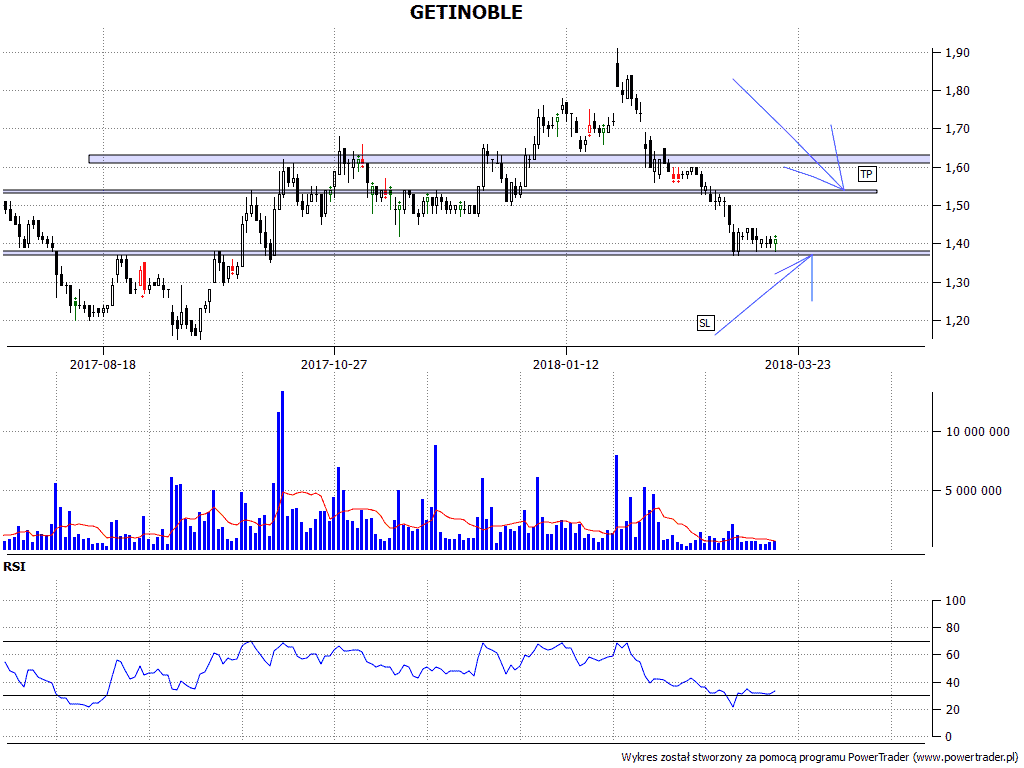 Getinoble: miejsce sensowne do zagrania, ale nie zapominajmy, że GNB ukazał mocną słabość przebijając 1,50 zł. Ten poziom już będzie stanowić solidny opór.