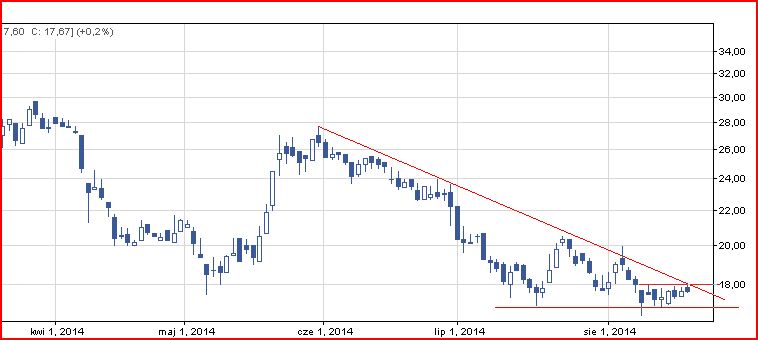 Piękny, powolny wzrost, a potem szybki zjazd w dół. Zobaczcie tylko jak ładnie giełda może zabrac cały zysk, na który się czekało miesiącami. Niedawno utworzył się młot poniżej 2zł. Uważam, że mimo złych fundamentów spółki jest tutaj do ugrania paręnaście jak nie parędziesiąt procent w terminie ok. 6 – 12 mc.