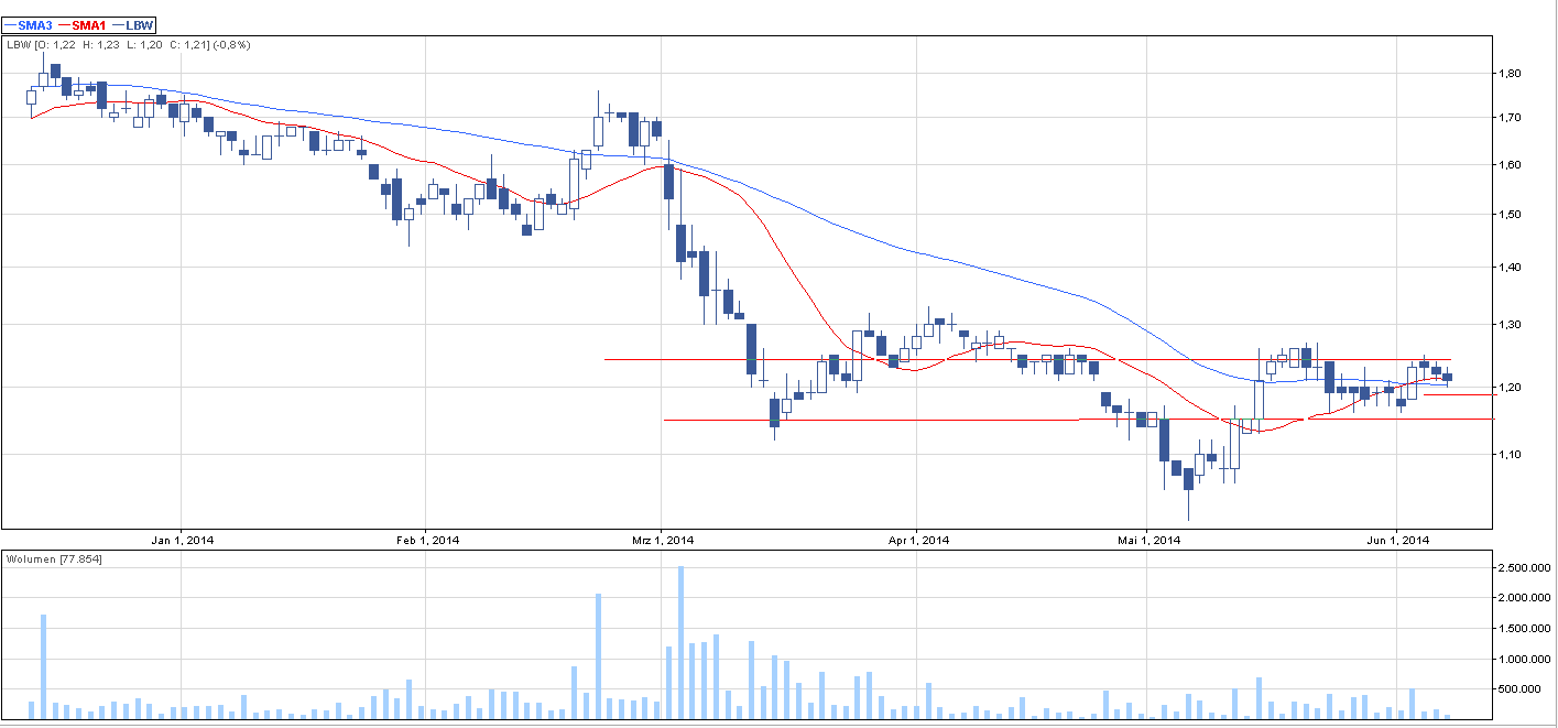 Oprócz tego wpadł mi w oko wykres spółki Lubawa, gdzie ustawiłbym się z limitem aktywacji na poziomie 1,24. Poziomy 1,19 oraz 1,15 uważam za zabezpieczające i tutaj nie powinna żadna świeszka dojść. Poza tym bardzo fajne przecięcie linii SMA 15 oraz SMA 30 3.06 daje całości pozytywną wymowę.