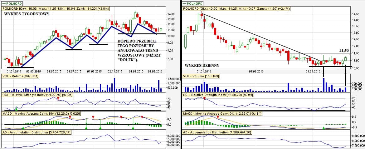 Świeca oczywiście słaba, ale dzisiaj cały rynek był stosunkowo słaby. Obroty na Polnord pojawiły się dopiero po 10, a więc dopiero po spadkach. Jeżeli nie zamknie się jutro sesja poniżej 11,00 zł, to będzie dalej pozytywnie.