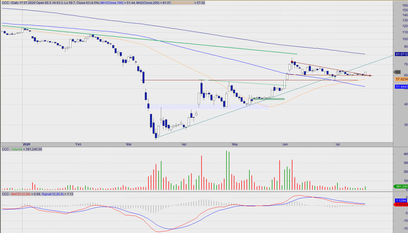 Prowrostowy charakter pozostał w utrzymaniu – na piątkowej sesji doszło ponadto do wybicia z trwającego dwa tygodnie marazmu i zarazem wyjścia górą z trójkąta zniżkującego. Aktualnie prawdopodobny jest dalszy scenariusz wzrostowy. Dopiero wybicie 60 EOD będzie negatywne.