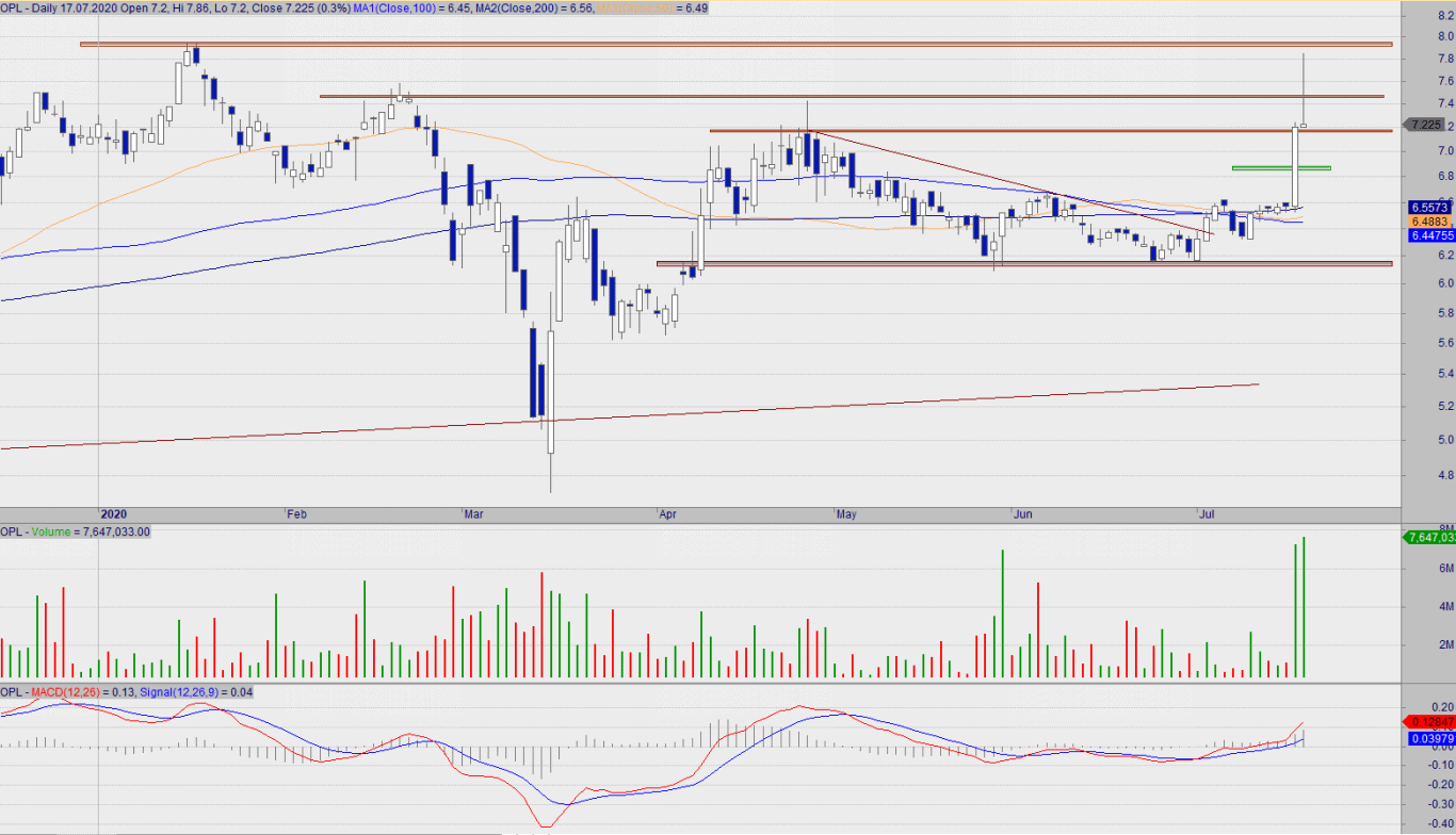 OPL ma za sobą dwie bardzo dynamiczne sesje, które wyprowadziły kurs w okolicę tegorocznego szczytu, mianowicie na 7,86. Swoją pozycję w większości zrealizowałem ze średnią 7,37, o czym na bieżąco informowałem w komentarzach pod ostatnim KzK. Pozostały pakiet trzymam w oczekiwaniu na rozwój przyszłych sesji, w szczególności na reakcję kursu przy starciu z potencjalnym wsparciem na 6,80~.