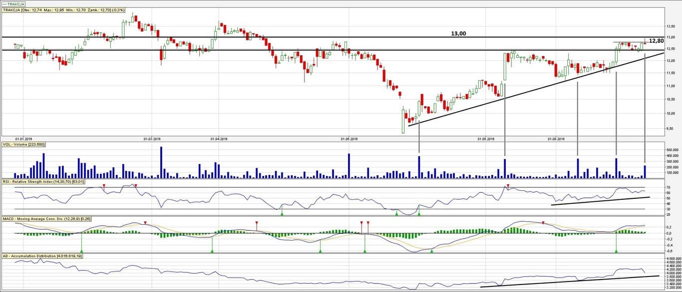 Zagrywka: pod przebicie kluczowego oporu 13,00 zł. Będziemy już zagrywać z wyprzedzeniem pod przebicie 12,80 zł.