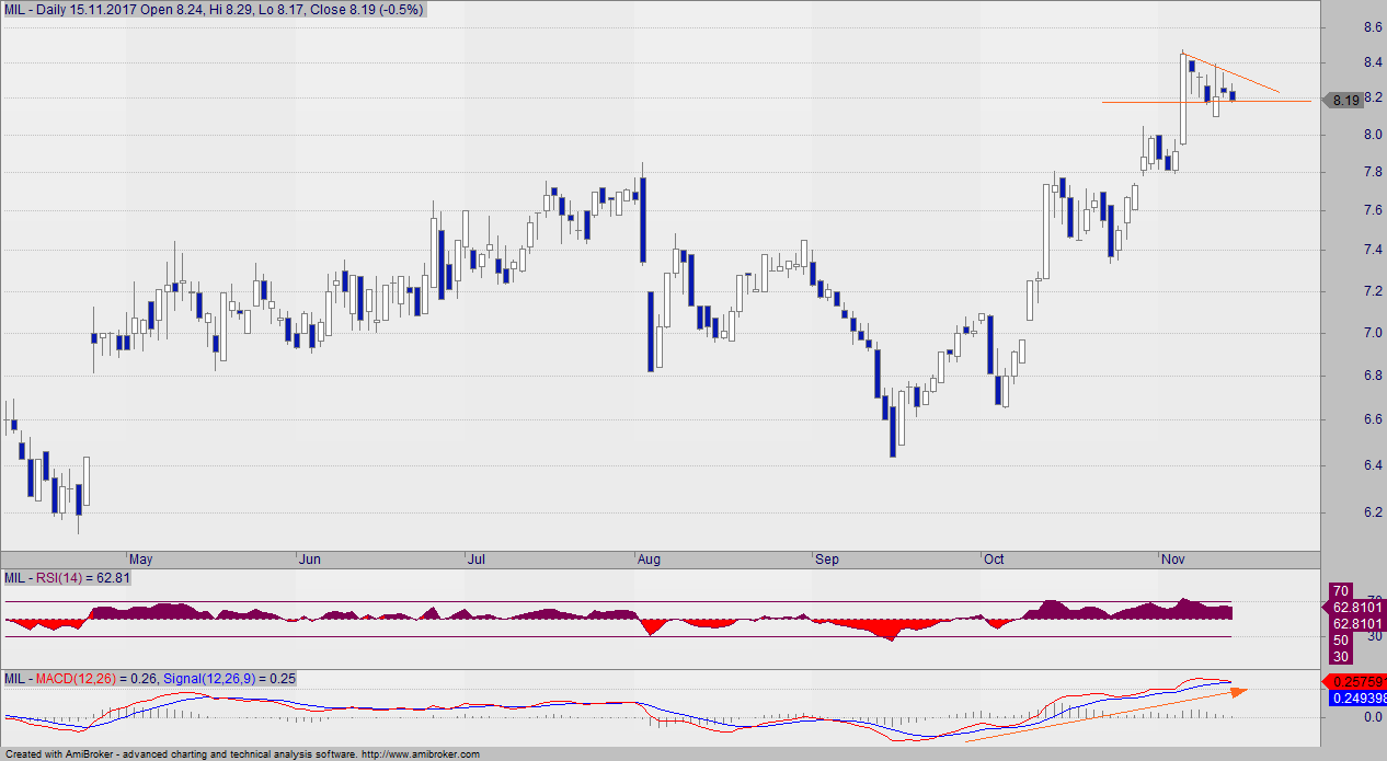 Typowo wzrostowa formacja, która wciąż ma potwierdzenie na MACD.