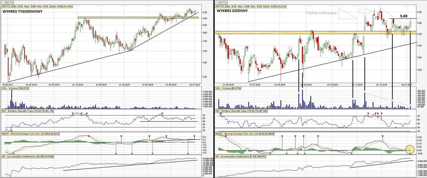 “Wyszliśmy” z Arctic. Spółka jednak dalej pozytywnie wygląda, więc będziemy ponownie zagrywać po przebiciu 5,67 zł.