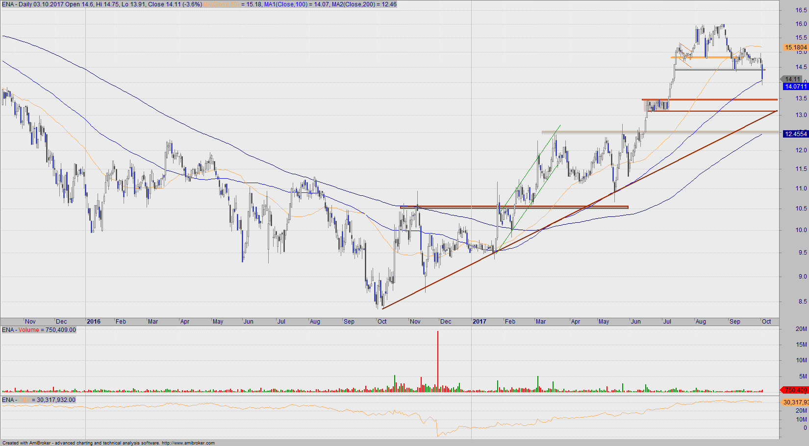 Opór na ~16,50 jest kluczowy i kurs w dalszym ciągu powinien na niego napierać. Widoczna jest sekwencja wyższych dołków, stąd też śmiało mogę stwierdzić, że walor pomimo względnie nijakiego wykresu znajduje się w trendzie wzrostowym.