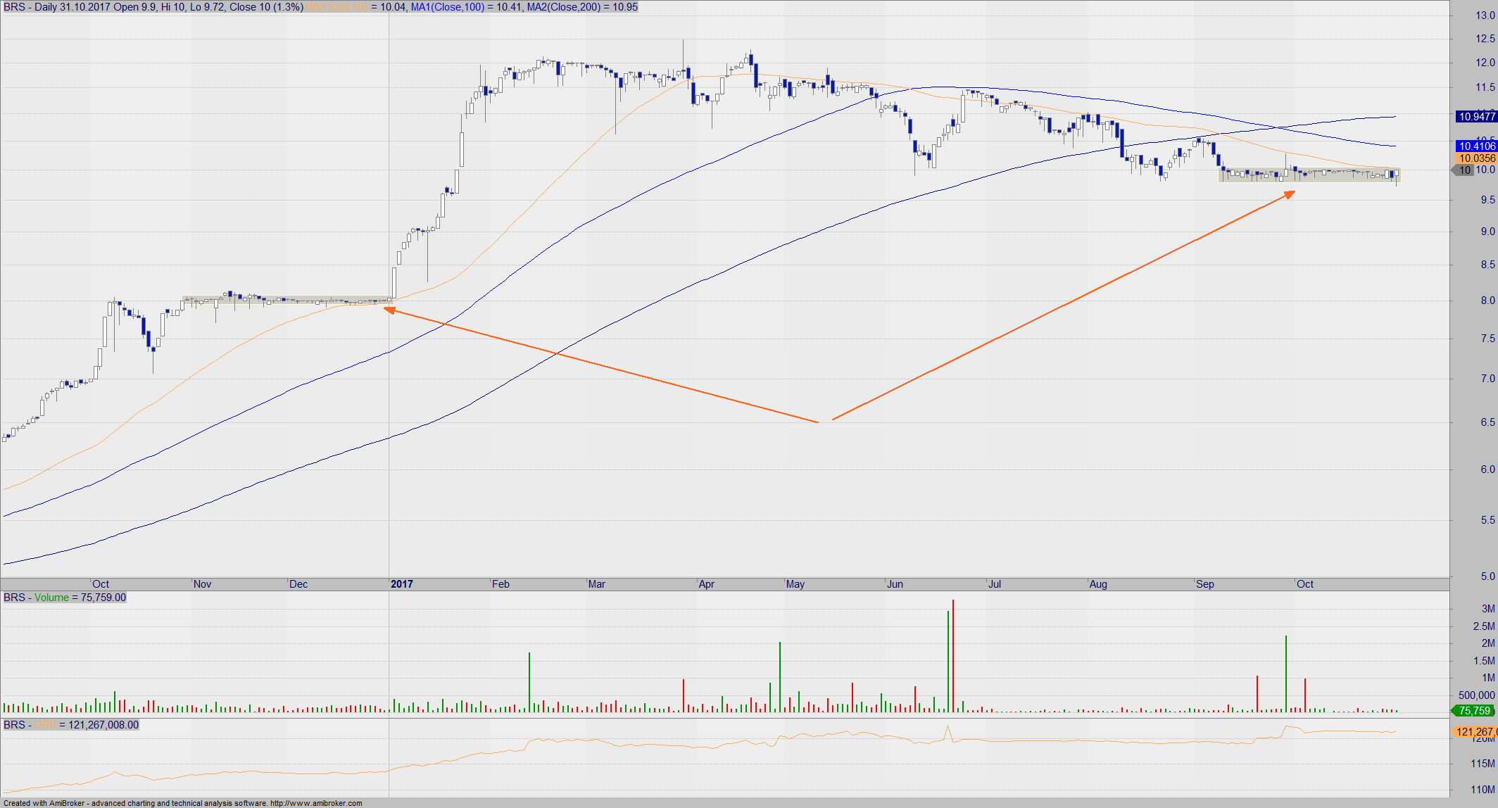 Śmiało możemy stwierdzić, że na wykresie Boryszewa tworzy się formacja bazy. Ostatnio widzieliśmy ją na początku października ub.r., a wybicie z niej dało w dwie miesiące stopę zwrotu ww. 50%. Szaleńczy rajd ma szansę na powtórkę, ale czekamy na zdecydowane wybicie w jeden z dwóch kierunków. Z uwagi na to, że istnieją kontrakty na akcje, możemy zagrać również na spadki – przedtem należy sprawdzić spread oraz płynność! Obecna konsolidacja jest na tę chwilę o dwa tygodnie krótsza od poprzedniej, niemniej należy dodać BRS do spółek “pod obserwacją”.