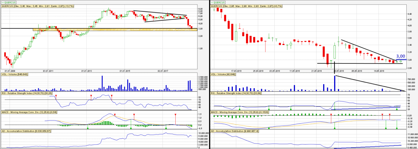 Z Quercusa wychodzimy po 2,96 zł (aktualne poziomy) i zagrywamy ponownie na przebicie 3,05: