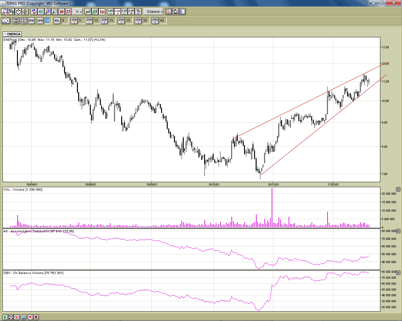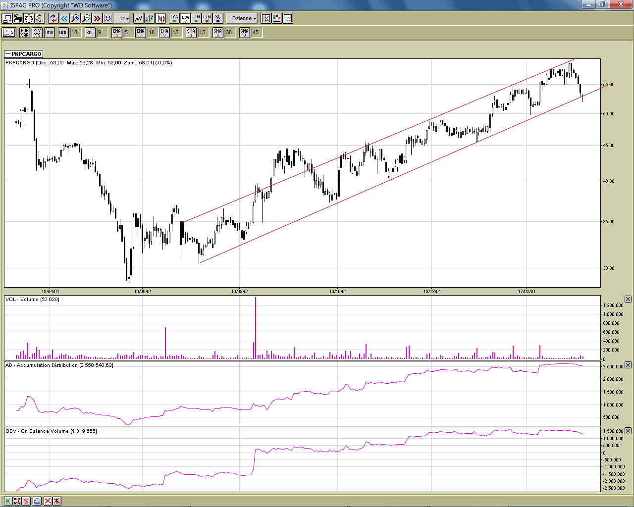 19. Pkpcargo – kurs porusza się w kanale wzrostowym, zagrywamy na odbicie się od linii dolnego ograniczenia kanału.