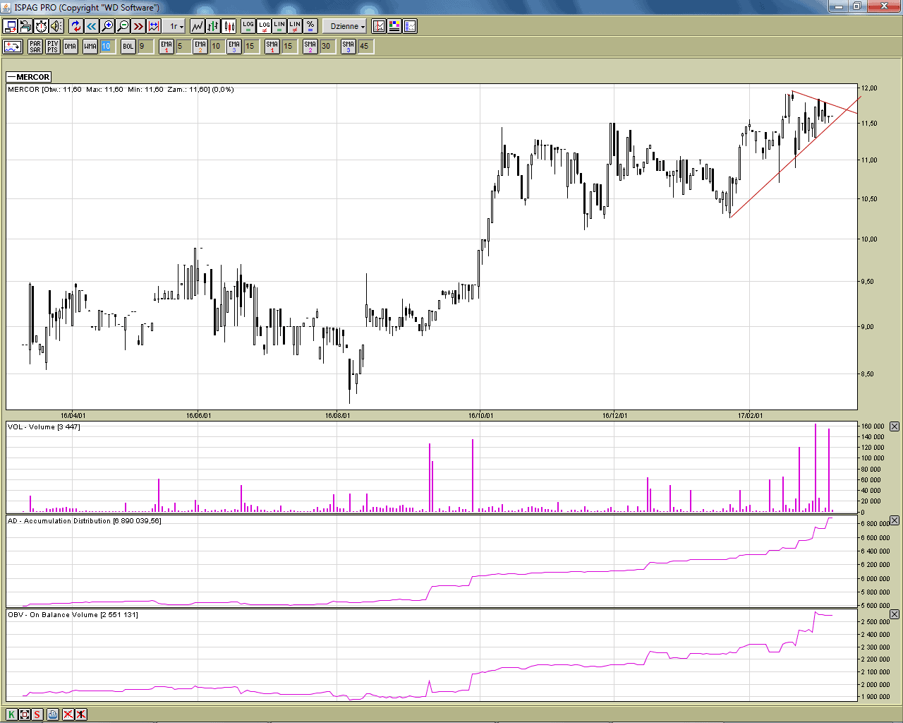 18. Mercor – na wykresie widać duże obroty w ostatnich dniach, gramy na przebicie linii korekty.