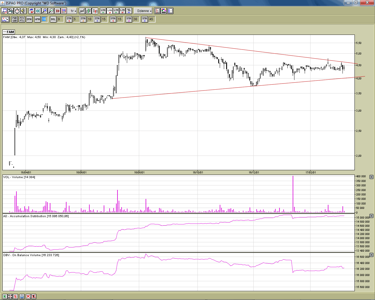 2. 4funmedia – na poprzednich sesjach widać wzmożone obroty, zagrywamy po przebiciu linii trendu.