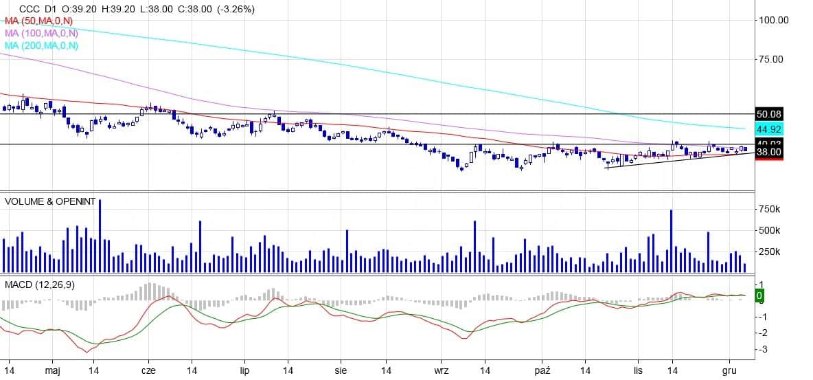 Na CCC aktualnie tworzy się formacja techniczna trójkąta symetrycznego. Wyjście z niego powinno właśnie nastąpić po przebiciu poziomu podanego przez Przemka.