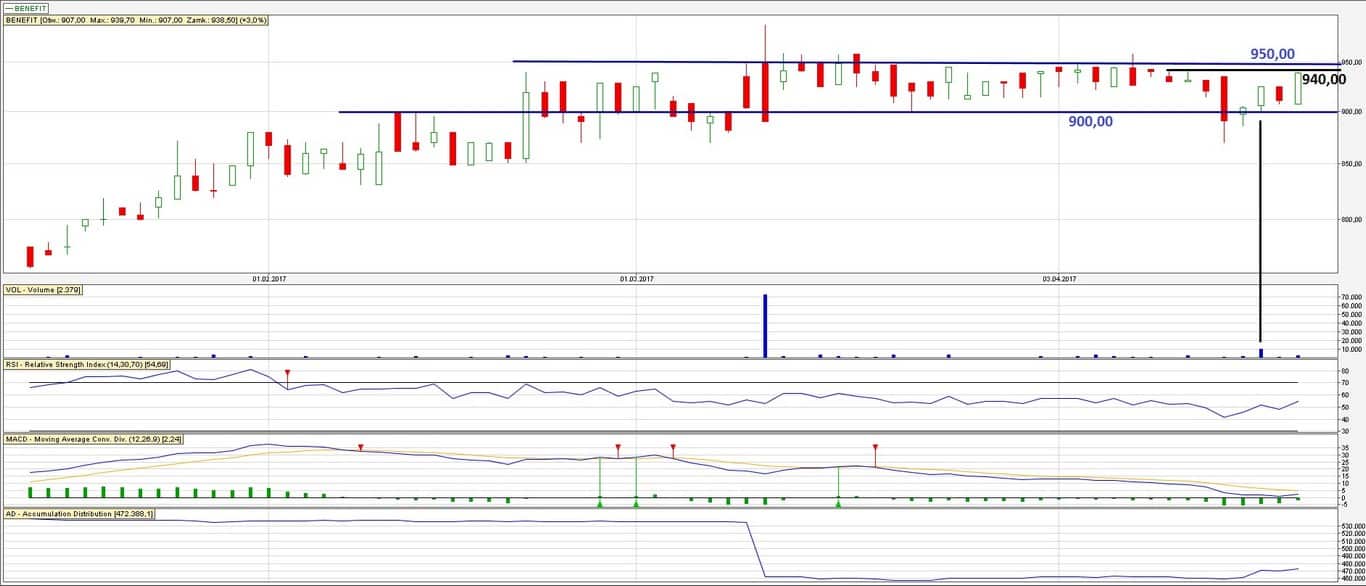 Comarch jak na razie pozytywnie. Benefit czekamy w dalszym ciągu na opuszczenie strefy 950 zł.