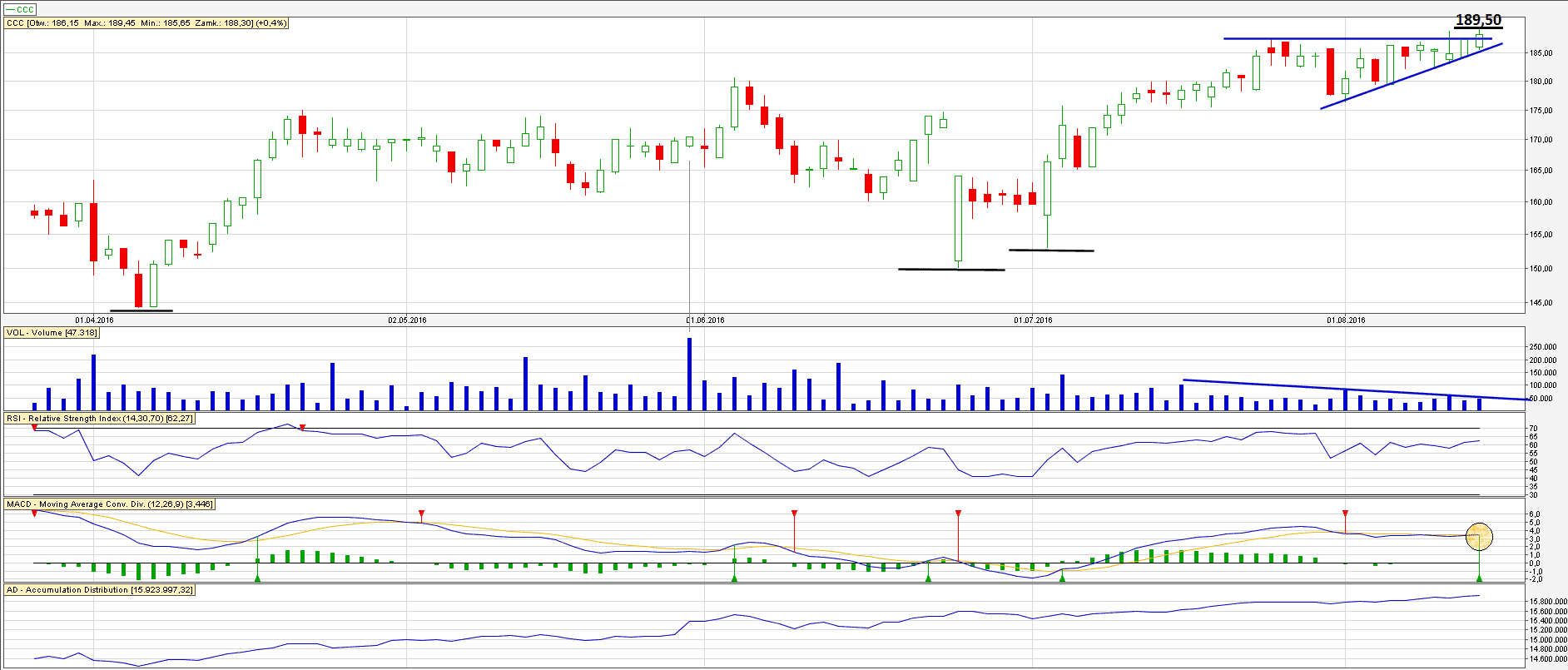 A CCC się aktywowało… PS. W opisie CCC przebicie przy 189,50 a nie 195,50, prawda? :)