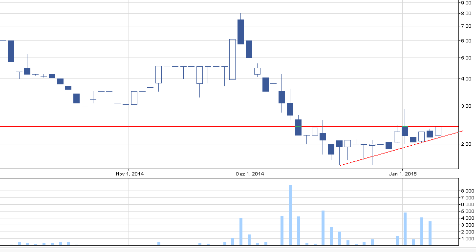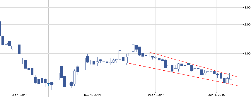 Ładny wzrost w piątek, ale również na niskim wolumenie wynoszącym 16 tyś zł. Obecnie widzę potencjalny wzrost do conajmniej 75 gr z powodu przebicia się przez kanał spadkowy.