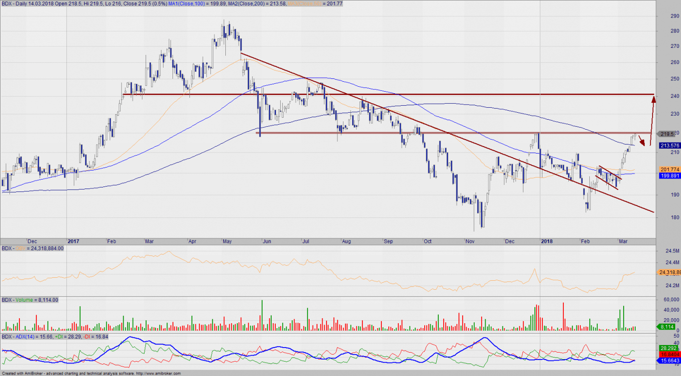 Komentarz: Kurs budowlanego giganta w końcu wybił się nad SMA200, a ostatnie zwyżki nastąpiły na solidnym obrocie, co utwierdza w przekonaniu, że walor zbiera siły na kolejny wzrostowy ruch. Przed kontynuacją zwyżek oczekiwałbym na mały retest SMA200, a następnie na silny ruch w górę do następnego oporu na 240 zł. Pierwszą przeszkodą pozostaje jednak silny opór na 220 zł – pokonanie tego poziomu musi nastąpić na dużym wolumenie, bowiem od niemal roku bariera ta pozostaje kluczowa. Kurs po wybiciu 220 zł zmieni poziom ten we wsparcie, a na tę chwilę najbliższe wsparcie jest na 210 zł.