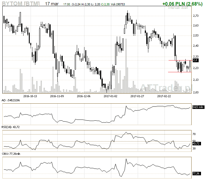 3. Bytom – kurs znajduje się w konsolidacji, zagrywamy na wybicie z konsolidacji, LimAkt 2,34 zł