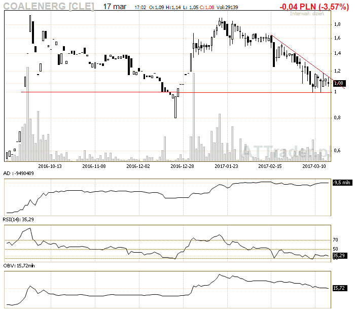 4. Coalenerg – na wykresie widoczny jest trójkąt będziemy zagrywać na jego wybicie, LimAkt 1,15 zł
