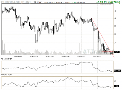 Spółka bardzo ryzykowna, ale na takich spółkach można czasem sporo zarobić grając z ciasnym SL lub wychodząc w ten sam dzień lub dzień później jeżeli nie dojdzie do energicznego wzrostu.